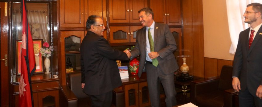 नेपालमा अमेरिकि लगानीबारे प्रचण्डसँग राजदूत बेरीको छलफल