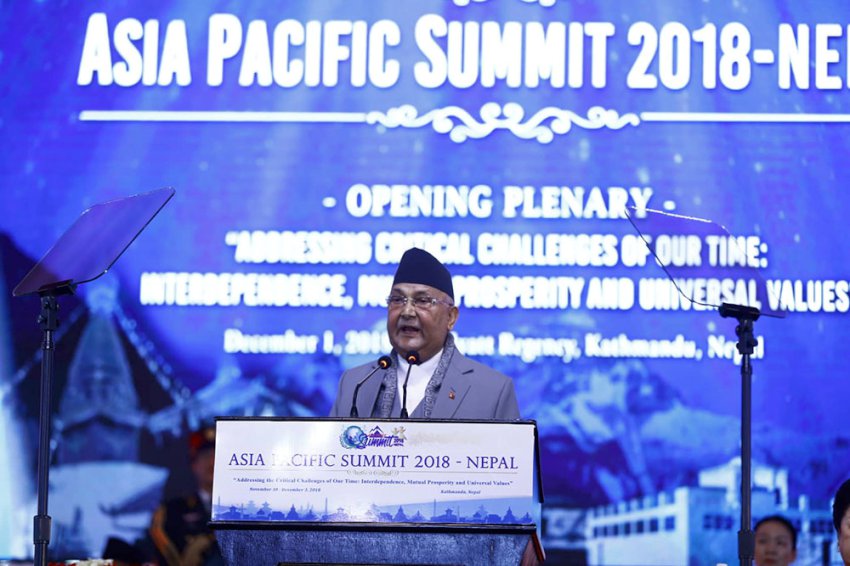 एशिया प्रशान्त शिखर सम्मेलनलाई आज सम्बोधन गर्दै उनले नेपालजस्तो विविधतापूर्ण समाजमा वार्ता, समझदारी, आपसी सम्मान, सम्झौता र संलग्नताले भित्री र बाह्य द्वन्द्वलाई सफलतापूर्वक समाधान गर्न सकिन्छ भन्ने देखाएको स्पष्ट गरे ।