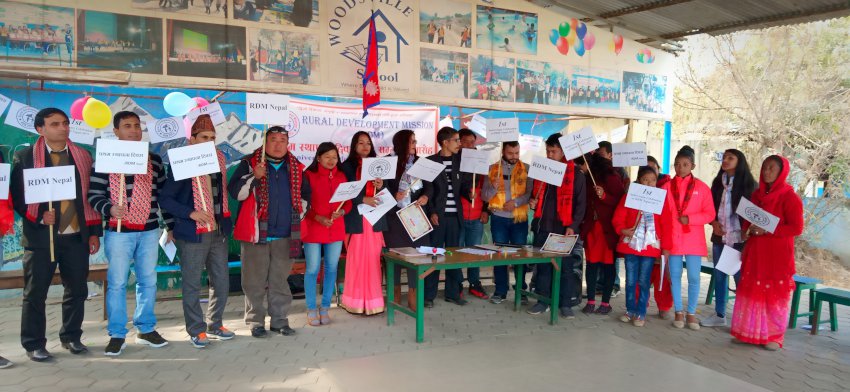 काठमाडौं। ग्रामीण विकास अभियान (RDM) ले दिगो विकास, समृद्धि र सामाजिक रुपान्तरणको लागि हाम्रो अभियान”भन्ने मूल नाराका साथ विभिन्न झाकी र प्लेकार्ड सहितको र्‍यालीले स्थानीय टोल परिक्रमा गरी प्रथम स्थापना दिवस Woodsville school थसिखेल ललितपुरको सभाकक्षमा पौष २१ गते सम्पन्न गरेको छ। । [gallery link=\"file\" columns=\"1\" size=\"full\" ids=\"224093\"] संस्थाका अध्यक्ष श्री एकराज भुजेलको अध्यक्षतामा भएको कार्यक्रममा बहुउद्देश्यीय अनुसन्धान विकास र नमुना सामाजिक संस्थाका अध्यक्ष श्री ख्यालमान राईको प्रमुख आथित्यमा भएको कार्यक्रम संचालन संस्थाकी सचिव मन्दिरा राईले गरेका थियो भने स्वागत मन्तव्य संस्थाका सदस्य पदम बहादुर सूर्यबंशीले गरे । प्रमुख अथितिबाट मैनबत्ति बालि उद्घा टन गरिएको कार्यक्रममा राष्ट्रिय धुनबाट कार्यक्रमको प्रारम्भ भएको थियो। कुल १५५ जनाको उपस्थितिमा भएको उक्त कार्यक्रममा स्थानीयबासी, महिला, वृद्ध, राजनैतिक कर्मी पत्राकारको उपस्थिति रहेको थियो, उपस्थित सम्पूर्ण अथितिलाई संस्थाकी उपाध्यक्ष कुसुम गुरुङ र सह-सचिव दर्शन आचार्यले खादा र मालाले स्वागत गरेका थिए । [gallery link=\"file\" columns=\"1\" size=\"full\" ids=\"224094\"] संस्थाको प्रथम स्थापना दिवसको अवसरमा संस्थाका सल्लाहकार श्री एकराज आचार्य र नागरिक अगुवा सुदिप अधिकारीले शुभकामना मन्तव्य दिएका थिए । संस्थाले वर्षभरी गरेका विविध गतिविधिमा स्वयंसेवकको रुपमा खटी काम गर्ने १४ जना व्यक्तिलाई प्रंशसा पत्र सहित सम्मान गरेको छ। सम्मानित हुने व्यक्तिहरुलाई प्रमुख अथिति श्री ख्यालमान राई तथा सल्लाहकार द्वय श्री एकराज आचार्य र विश्वनाथ खड्का, कानुनी सल्लाहरका किशोर दंगाल र संस्थाकी उपाध्यक्ष कुसुम गुरुङले प्रंशसा-पत्र, खादा र माला लगाई सम्मान गरेका थिए । उक्त कार्यक्रममा युवा गजलकार श्री राजकुमार राई “भुल्केली साइलो” ले राष्ट्रप्रतिको भावनाले भरिएको गजल प्रस्तुत गरेका थिए।यस ग्रामीण विकास अभियान सामाजिक संस्थाले सामाजिक सशक्तिकरणको लागि नेतृत्व, शिक्षा, स्वास्थ्य, स्वरोजगारिता, उद्यमसिलता, सामुदायिक विकास, वातावरण संरक्षण, गरिबी निवारण, व्यावसायिक खेती प्रणाली, मानवअधिकार, कानुनी शासन, दैवीप्रकोप तथा विपत्तिमा सहयोग पुर्यावउने जस्ता सामाजिक कार्य गर्दै आइरहेको छ।