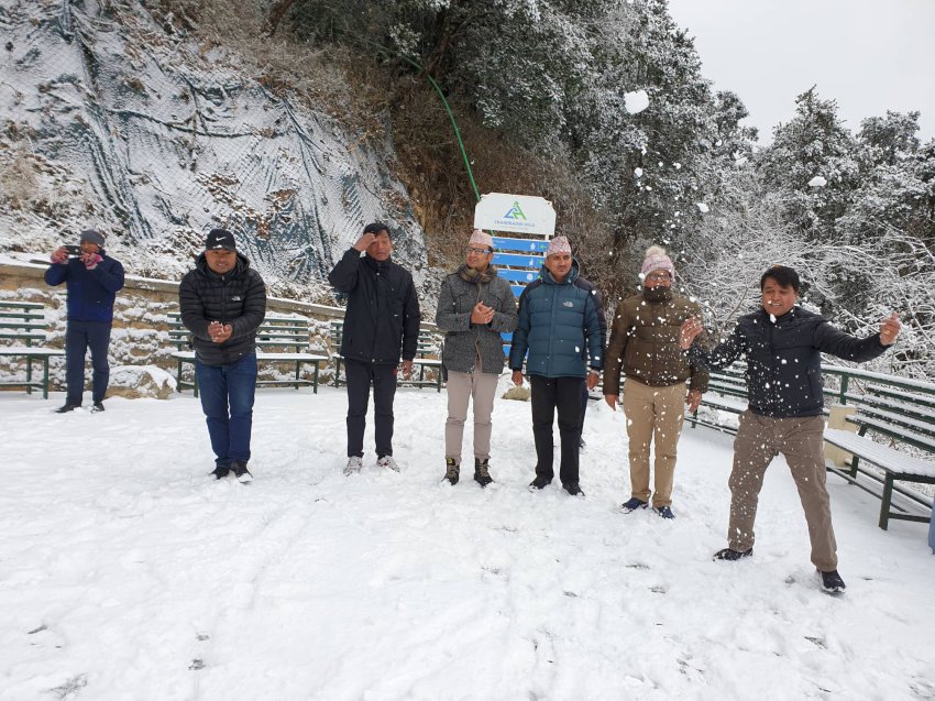 जाने हो हिउँ खेल्न ? काठमाडौं वरपरका डाँडाकाँडामा हिमपात