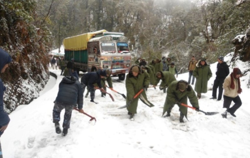 हिमपातका कारण पहाडी जिल्लाको यातयात ठप्प