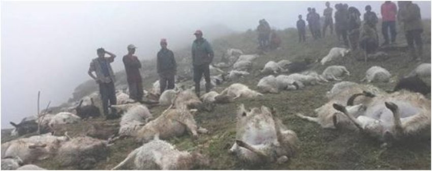 एकै ठाउँमा चरिरहेका ५२ भेडा चट्याङ लागेर मरे