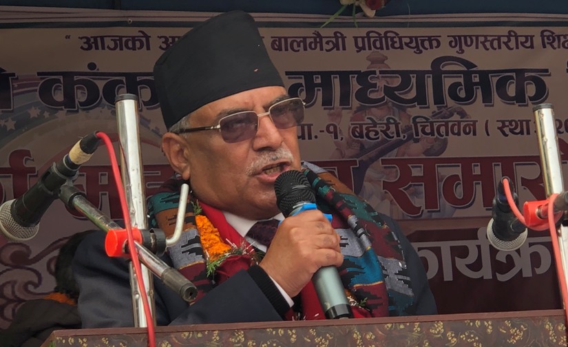 चितवन । पूर्वप्रधानमन्त्री एवं नेपाल कम्युनिष्ट पार्टी (नेकपा) का अध्यक्ष पुष्पकमल दाहाल ‘प्रचण्ड’ले मुलुकको समृद्धिका लागि राष्ट्रिय एकता र सहमतिको आवश्यक भएको बताएका छन् । चितवनको खैरहनीमा बिहीबार कंकाली माध्यमिक विद्यालयको स्वर्ण महोत्सव समुद्घाटन समारोहलाई सम्बोधन गर्दै उहाँले यस्तो विचार व्यक्त गरेका हुन् । उनले शिक्षा नै विकास र समृद्धिको आधार भएको भन्दै शिक्षामा गुणात्मक रुपले प्रगति र सुधार सुनिश्चित नभई एउटा राष्ट्रमा समृद्धिको कल्पना गर्नु निरर्थक हुने धारणा राखे ।