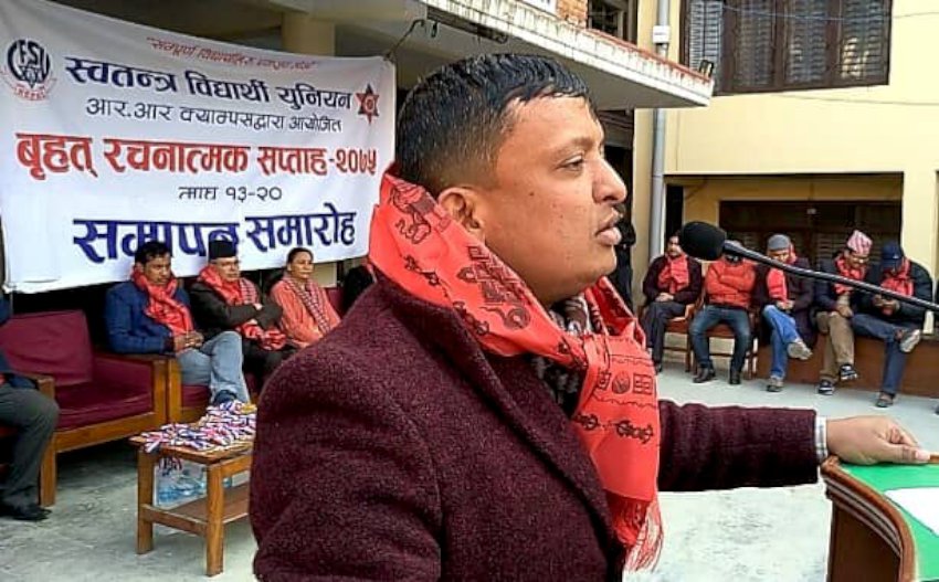 काठमाडौं । नेकपा निकट अनेरास्ववियू (क्रान्तिकारी)का वरिष्ठ उपाध्यक्ष सुरेन्द्र बस्नेतले गगन थापाकै निर्देशनमा नेविसंघका कार्यकर्ताहरुले सरकारी गाडी जलाएको दावी गरेका छन् । आज आरआर क्याम्पसको स्ववियुद्वारा आयोजित रचनात्मक सप्ताहको समापन तथा पुरस्कार वितरण समारोह कार्यक्रममा बस्नेतले काङ्ग्रेस नेता थापाले दोहोरो चरित्र देखाएको आरोप लगाएका हुन्। काङ्ग्रेसका नेताहरुले दोहोरो चरित्र निभाएको भन्दै बस्नेतले भने -\' नेविसंघका कार्यकर्तालाई एकातिर सडकमा आगो वाल्न निर्देशन दिने र अर्कोतिर सामाजिक संजालमा त्यसको विरोध गर्ने एउटै पात्र गगन थापाजी नै हो ।\' आज राजधानीको आरआर स्ववियुद्वारा आयोजित कार्यक्रममा बस्नेतले भने -\' जनताको करवाट किनिएको सरकारी सम्पत्ति बिना प्रयोजन नष्ट गर्नेहरु देशद्रोही हुन्।\' मुलुक निर्वाचन भएर शान्ति र समृद्धिको यात्रामा अघि वढिरहेको वेला गाडी जलाउने कार्य कतैवाट पनि पुष्टि नहुने बस्नेतले वताए। बस्नेतले स्ववियु निर्वाचनवाट भाग्नका निम्ति नेविसंघले सडक आन्दोलनको नौटंकी गरेको आरोप लगाए।
