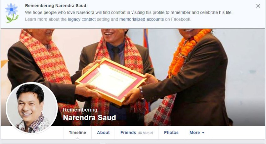 काठमाडौं। गएको शनिबार दिउँसो २ बजेतिर फेसबुक चलाउन खोजेँ, चलेन । फेरि लगइन गर्न खोज्छु, चल्दैन । जति गर्दा पनि चल्दैन । मैले नेटमा केही समस्या भयो कि भनेर खासै ध्यान दिइनँ । अफिसमा जान हतार थियो । निस्किएँ । अफिसमा पनि फेकबुक चलेन । यो समाचार आजको अन्नपूर्णमा पोष्टमा छ । त्यसमा रहेको ‘नोटिस आइकन’ बल्ल पढेँ । मेरो होस झन्डै गायब भयो । त्यसमा लेखिएको थियो ‘दिस एकाउन्ट इज इन अ इस्पेसल मेमोरिखलाइज्ड स्टेट ।’ अर्थात ‘यो एकाउन्ट विशेष रुपमा स्मरणीय छ ।’ अनि, फेसबुकको हेल्प सेन्टरमा गएर यसको खास अर्थ खोजेँ । त्यहाँ प्रष्टै लेखिएको थियो , ‘मेमोराइज्ड अकाउन्ट कुनै पनि दिवंगत व्यक्तिलाई फेसबुकमा सम्झने र शोक व्यक्त गर्ने तरिका हो ।’ अब, भन्नुहोस् मेरो अवस्था के भयो होला ?