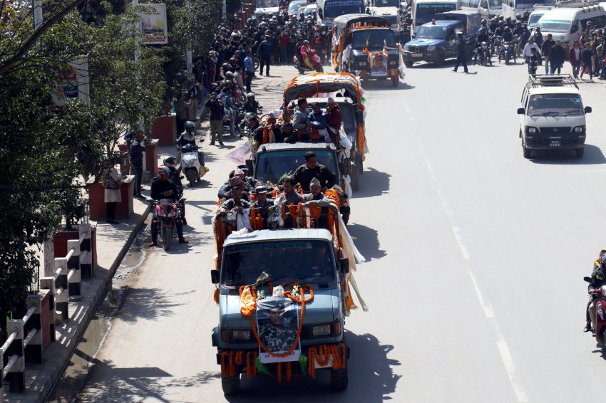 यसअघि बिहान दिवङ्गत सातै जनाको शव काठमाडौँको टुँडिखेलमा श्रद्धाञ्जलिका लागि राखिएको थियो । श्रद्धाञ्जलि दिन मृतकका परिवार, आफन्तजन, शुभेच्छुक, विभिन्न दलका नेता उच्च पदस्थ सरकारी अधिकारी सहभागी भएका थिए ।