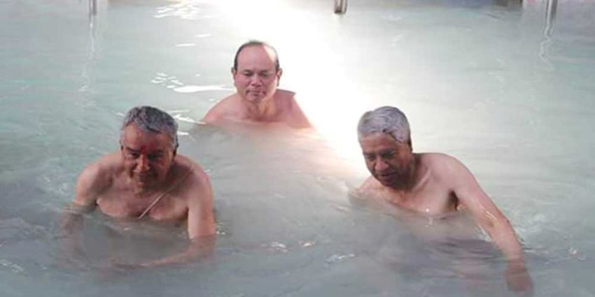बेनी । नेपाली कांग्रेसका सभापति शेरबहादुर देउवा, वरिष्ठ नेता रामचन्द्र पौडेल र प्रवक्ता विश्वप्रकाश शर्मासहितका नेताहरुले बेनी नगरपालिका ४ मा रहेको प्राकृतिक तातोपानी कुण्डमा पुगेर स्नान गरेका छन् ।