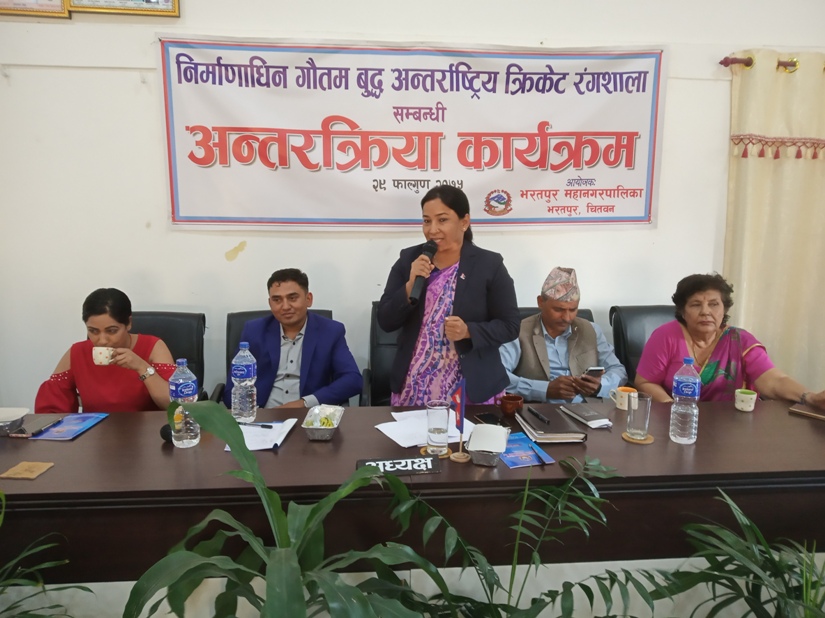 चितवन । भरतपुर महानगरपालिका प्रमुख रेनु दाहालले एक महिनामा क्रिकेट रंगशालाको काम सोचेभन्दा बढी भएको बताएकी छन् । भरतपुर महानगरपालिकाले आज निर्माणाधीन गौतम बुद्ध अन्तर्राष्ट्रिय क्रिकेट रंगशालासम्बन्धी अन्तक्र्रिया कार्यक्रममा महानगर प्रमुख दाहालले सम्झौता भएको मितिले एक महिना कटेर आएको र यो अवधिमा सोचेको भन्दा बढी काम भएको बताइन् ।