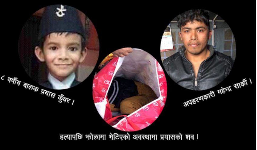 आजको गोरखापत्र दैनिकमा खबर छ - बालककै बाबुले सञ्चालन गरेको गेष्ट हाउसका सवारी चालक समेत रहेका महेन्द्र (एस) सार्कीलाई अदालतले आजीवन कैदको सजाय सुनाएको हो । अपहरणपछि हत्याको कसुरमा आजीवन कैद सजाय सुनाइएको अपराध संहिता लागू भएपछि सम्भवतः यो पहिलो घटना हो ।