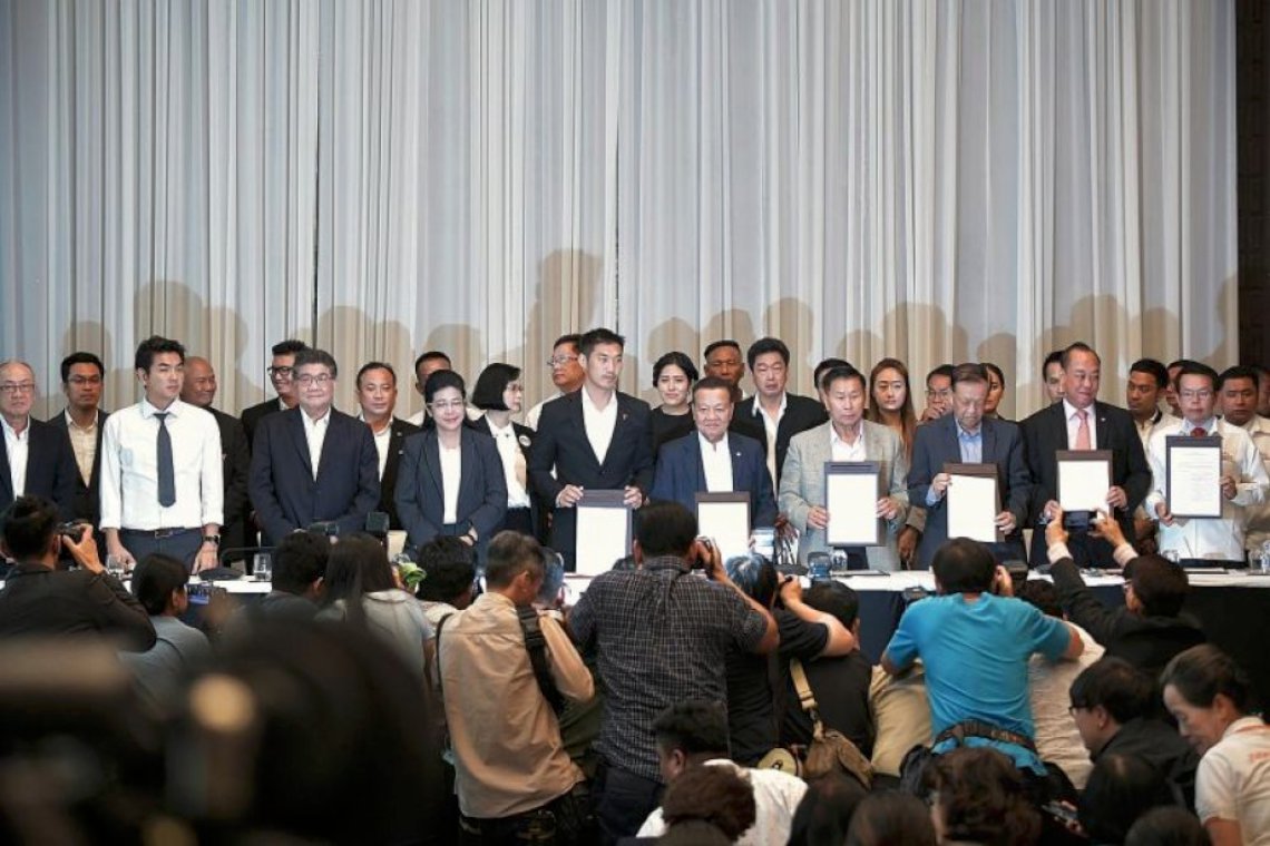स्वेच्छिक निर्वासनमा रहेका पूर्व प्रधानमन्त्री थाक्सिन सिनावात्राको समर्थन रहेको फिउ थाई पार्टी सहित अन्य छ पार्टी गठबन्धनमा छन् ।