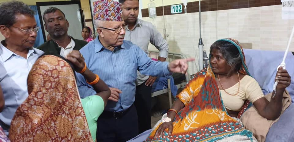 पर्सा । नेकपाका वरिष्ठ नेता एवं पूर्व प्रधानमन्त्री माधवकुमार नेपालले बारा पर्साको विभिन्न ठाउँमा आएको विनाशकारी हावाहुरीबाट घाइते भई विभिन्न अस्पतालमा उपचार गराइरहेकासँग भेट गरी उनीहरुको स्वास्थ्य अवस्था बारे जानकारी लिएका छन् ।