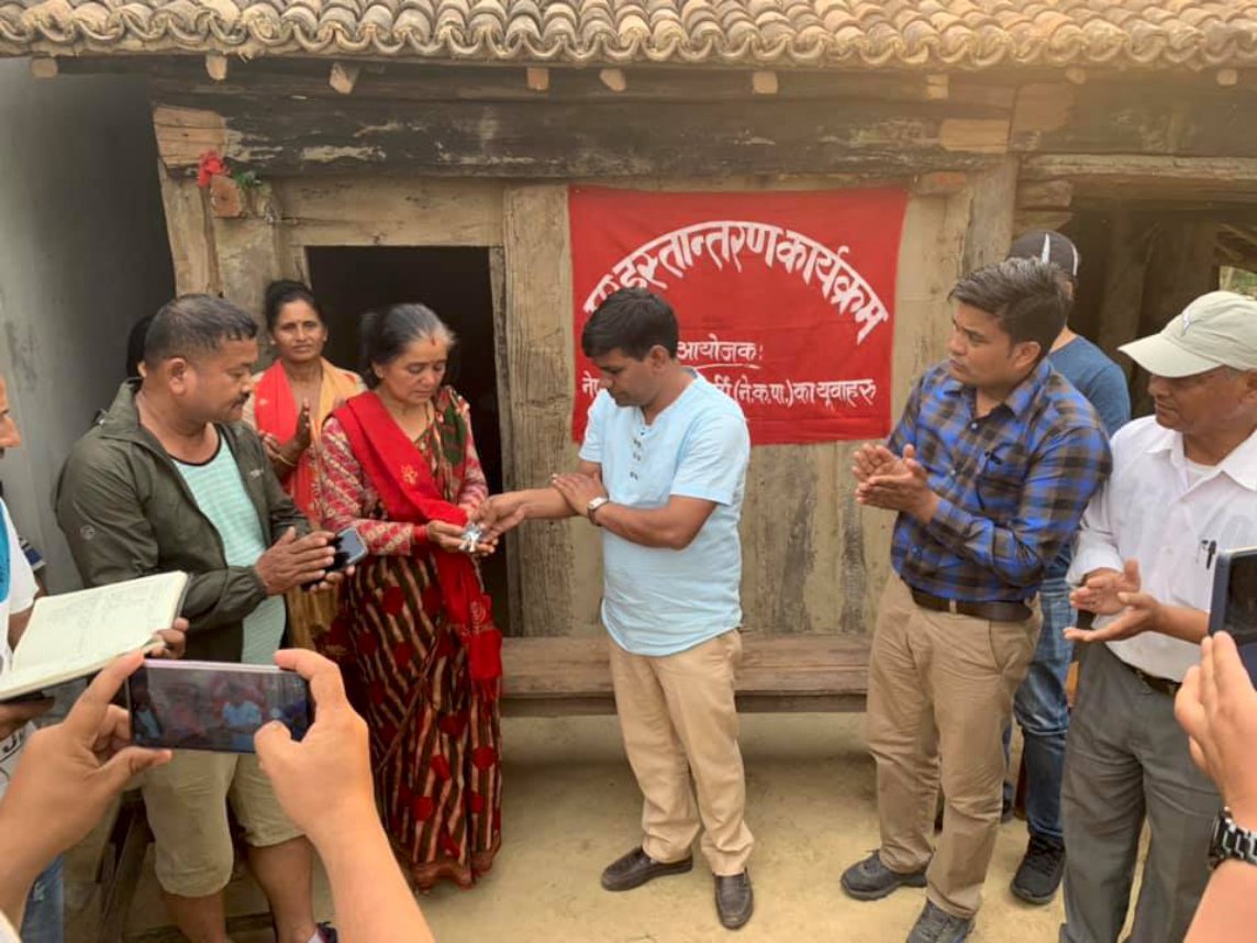 नेकपाका युवा संगठनद्धारा असहाय महिलालाई घर हस्तान्तरण