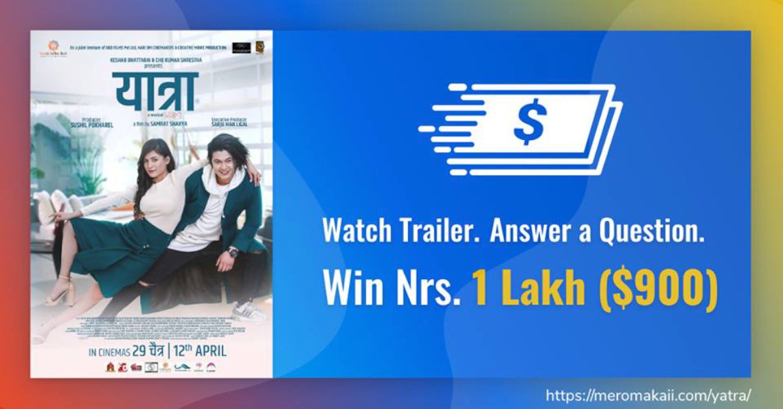 प्रतियोगितामा भाग लिन चाहने दर्शकहरुका लागि चलचित्र युनिटले केही नियमहरु अगाडि सारेको छ । चैत २९ गते रिलिज हुन लागेको चलचित्र यात्राको एक पात्र तपस्याले कसरी दृष्टि गुमाइन् भन्ने प्रश्नको ७ उत्तरमध्ये एक सही उत्तर दर्शकले मिलाएर एक लाख पुरस्कार जित्नेछ ।