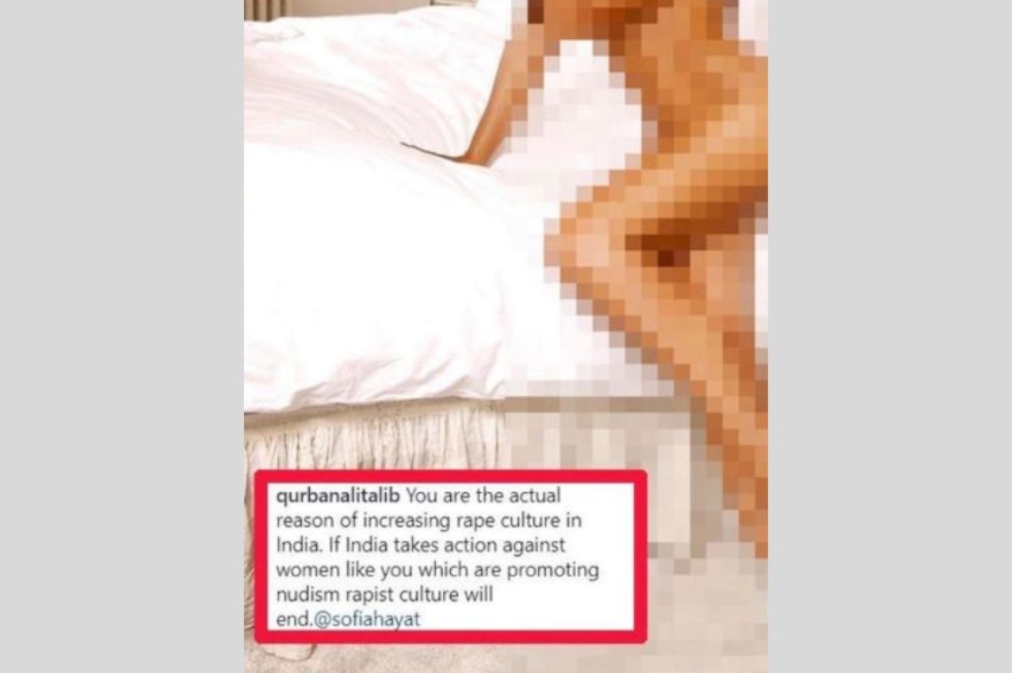 अब सोफियाले ईश्वरको कुरा गरेर तस्बिर सेयर गरिन् । तर इन्स्टाग्राम प्रयोगकर्तालाई यो तस्बिर अश्लिल लाग्यो । त्यसपछि तस्बिरमा विभिन्न प्रकारको कमेन्ट आउन थाल्यो । कतिले त उनको तस्बिरलाई बलात्कारको कारण नै बताए । कुरबान नामका एक प्रयोगकर्ताले लेखे, ‘भारतमा बढ्दो बलात्कारको घटनाको वास्तविक कारण तपाईं नै हो । यदि देशमा नग्नतालाई बढाउने महिलाविरुद्ध कदम उठाइयो भने बलात्कारको घटना समाप्त हुन्छ ।