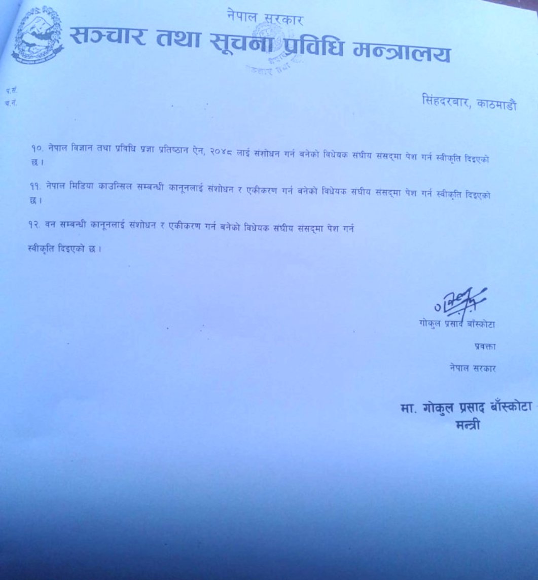 मन्त्रिपरिषदका अन्य निर्णयहरू यस्ता छन् –