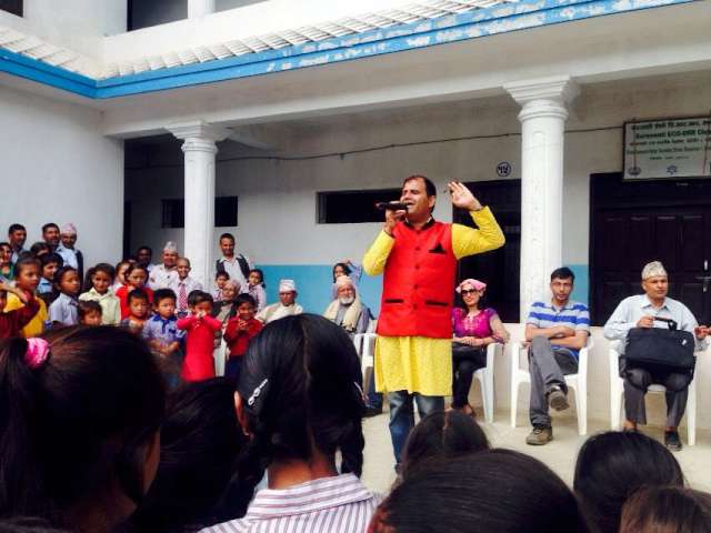 \"Bhotechaur_2-640\"१ असार, भोटेचौर (सिन्धुपाल्चोक) । वैशाख १२ गतेको विनाशकारी भूकम्प र त्यसपछि आइरहेका पराकम्पनले सर्वाधिक क्षति व्यहोरको सिन्धुपाल्चोक जिल्लाको भोटेचौर गाविस वडा नं ८ रहेको श्री जाल्पादेवी उच्च माविमा निःशुल्क स्वास्थ्यशिविर एवम् मनोरञ्जनात्मक कार्यक्रम सम्पन्न भएको छ । व्यक्तिगत प्रयास र खर्चबर्चमै भूकम्प प्रभावित विभिन्न जिल्लामा निःशुल्क स्वास्थ्यशिविर सञ्चालन गरी औषधी समेत वितरण गर्दै आएका डा. रविन्द्र पाण्डे (रविन्द्र समिर) ले उक्त गाविस र अन्य क्षेत्रका गरी करिव ४ सय ५० जनाको स्वास्थ्यपरीक्षण गरी औषधी समेत प्रदान गरेका छन् । डा. समिरको उक्त ५०औं स्वास्थ्यशिविरमा सेवा लिन धेरै टाढादेखि पीडितहरु आएका थिए । सम्पूर्ण पीडितहरुलाई रोगअनुसारका फूलकोर्ष, गर्भवती, बालबालिका तथा जेष्ठ नागरिकलाई अतिरिक्त रुपमा भिटामिन, क्याल्सियम, प्रोटिनलगायतका सप्लिमेन्ट पनि डा. समीरले वितरण गरे । \"Bhotechaur_1-640\"सोही शिविरको उत्तरार्द्धमा वरिष्ठ हास्यकलाकार मनोज गजुरेलले हास्यव्यंग्यात्मक प्रस्तुति र गीतमार्फत भूकम्पीय सुरक्षा र सामाजिक सम्बन्धका बारेमा विभिन्न सचेतनामूलक सन्देशहरु प्रस्तुत गरे । कार्यक्रममा विद्यालयका विद्यार्थी एवम अभिभावकहरुको बाक्लो उपस्थिति रह्यो । डा. समिरले विपदको यो घडीमा पीडितहरुसँग साक्षात्कार गरी शारीरिक र मानसिक समस्याहरुको निदानका लागि आयोजित स्वास्थ्य शिविरमार्फत आत्मस्पर्श गर्न पाउँदा आफूलाई सन्तुष्टि प्राप्त भएको बताए । मनोरञ्जनात्मक र मनोसामाजिक शैलीको गजुरेलको प्रस्तुतिमार्फत विद्यार्थी एवम् अभिभावकहरुले भरपुर मनोरञ्जन लिएका थिए  । सोही प्रस्तुति श्री सरस्वती उच्च मावि भोटेचौरमा पनि भएको थियो ।