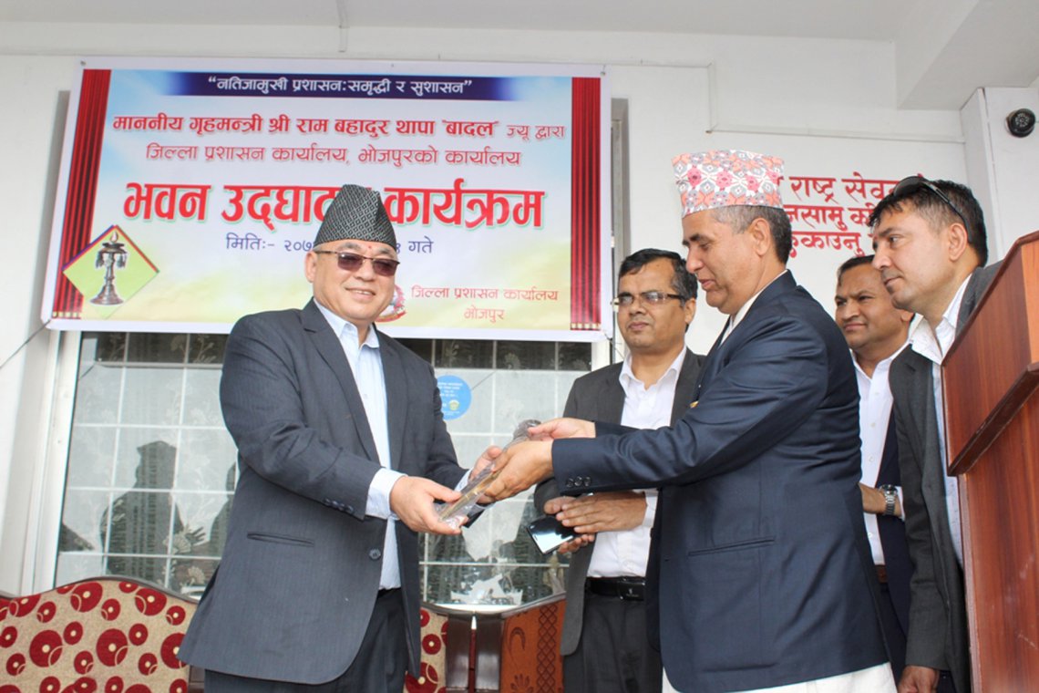 भोजपुर । गृहमन्त्री रामबहादुर थापाले जिल्ला प्रशासन कार्यालय भोजपुरको भवनको आज उद्घाटन गर्नु भएको छ ।