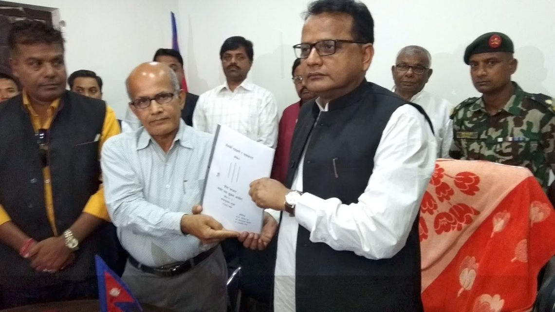 जनकपुरधाम। प्रदेश नं २ को राजधानी र नामकरणका लागि गठित संवाद सुझाव आयोगले आज मुख्यमन्त्री लालबाबु राउतलाई अध्ययन प्रतिवेदन बुझाएको छ ।