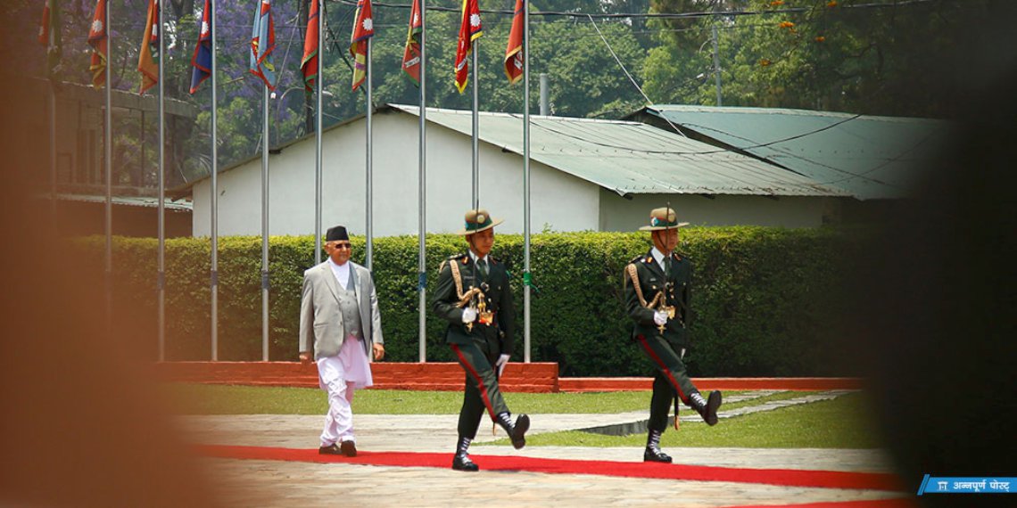 सो अवसरमा नेपाली सेनाको टुकडीले प्रधानमन्त्री ओलीलाई सलामी दिएको थियो ।