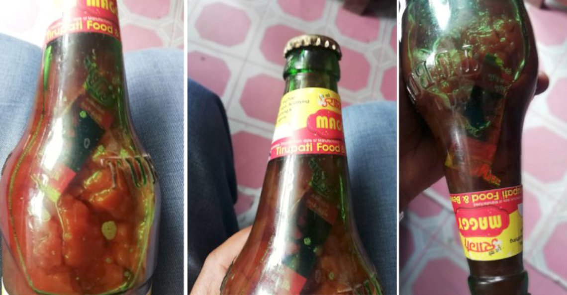 अखाद्य वस्तु भेटिएपछि ससको बोतल बरामद गरिएको गाउँपालिकाका नायब सुब्बा दयाराम पौडेलले जानकारी दिए । तिरुपती फुड्स एण्ड वेभरेजले २०१८ नोभेम्बर २६ मा उत्पादन गरेको उक्त ससको बोतलमा उपभोग्य समयअवधि उल्लेख छैन । ७०० मिलिलिटरको बोतलभित्र ससमाथि तैरिएको अवस्थामा सुर्तीको खोल प्रष्टसँग देखिएको छ ।