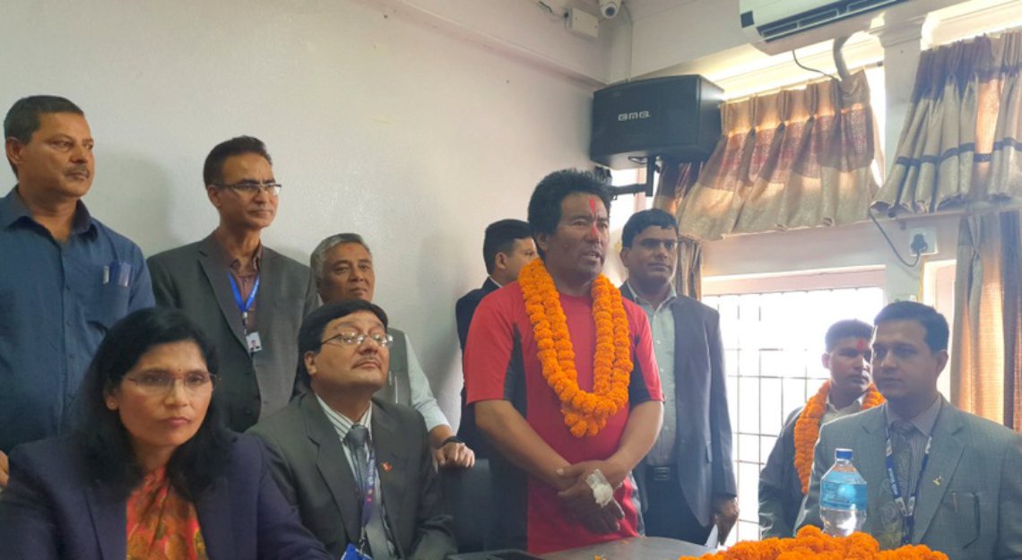 काठमाडौं । सगरमाथको उचाई नाप्न सोलुखुम्बु गएको टोली काठमाडौं फर्केको छ । शुक्रबार भूमी व्यवस्था तथा सहकारी मन्त्रालयमा आफ्नो कार्यालयमा उनीहरुको स्वागत गरेको छ ।