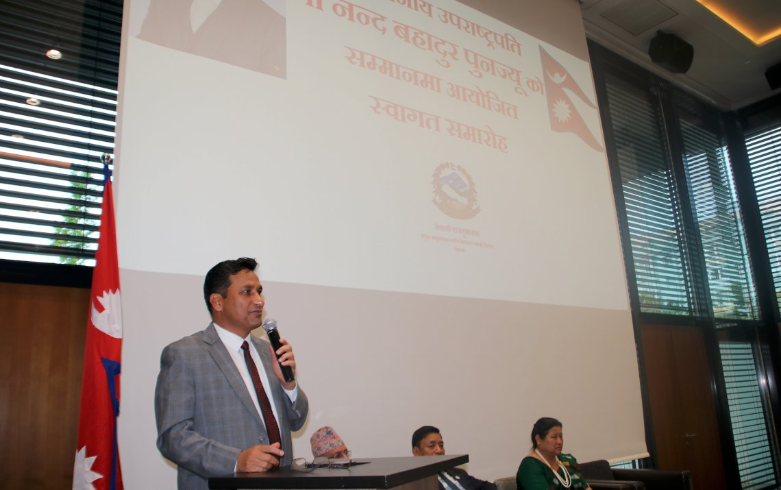 काठमाडाैं । वन तथा वातावरण मन्त्री शक्तिबहादुर बस्नेतले विदेशमा बस्ने हरेक नेपाली नेपालको दूत भएको बताए । उनले नेपाल समृद्धिको मार्गमा बढेको बताउँदै अघिल्लो वर्ष आधार वर्ष भएको बताए । ‘हामीले भनेका छौँ की अघिल्लो वर्ष आधार वर्ष बन्यो, संरचना बन्यो, अब विकास र समृद्धिको यात्रालाई गति पकड्ने छ,’ उनले भने ।