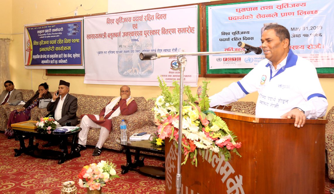 कार्यक्रममा गण्डकी प्रदेशका सामाजिक विकासमन्त्री नरदेवी पुनले आफ्नो प्रदेशमा सुर्तीजन्य पदार्थले निम्त्याउने रोगका बारेमा अभियान सञ्चालन गरिरहेको जानकारी दिए।