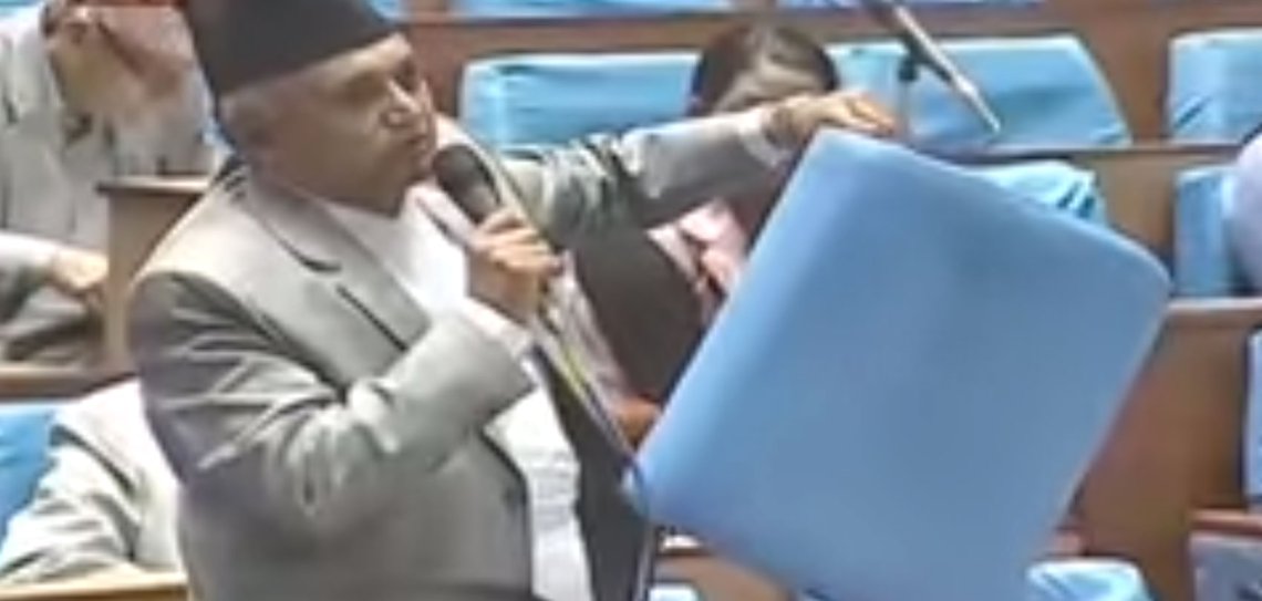 सङ्घीय ससंद्को बैठक कक्षमा सांसदको आसनका लागि राखिएको कुर्सीको समयमा मर्मत नुहँदा सांसदले दुःख पाएका छन् । आजको बैठकमा सत्तारुढ दलका सांसद खगराज अधिकारीले बिग्रिएको कुर्सीको भाग उठाएर सभामुखलाई देखाउँदै भने, “कुर्सी मर्मत गर्नुप¥यो भनेर कति दिन भन्ने रु सभामुख महोदय, ज्यान जोगाइ पाउँ ।” यसपछि सभामुख कृष्णबहादुर महराले आफ्नो ध्यानाकर्षण भएको बताए । सङ्घीय ससंद्को बैठक कक्षमा सांसदको आसनका लागि राखिएको कुर्सीको समयमा मर्मत नुहँदा सांसदले दुःख पाएका छन् । आजको बैठकमा सत्तारुढ दलका सांसद खगराज अधिकारीले बिग्रिएको कुर्सीको भाग उठाएर सभामुखलाई देखाउँदै भने, “कुर्सी मर्मत गर्नुप¥यो भनेर कति दिन भन्ने ? सभामुख महोदय, ज्यान जोगाइ पाउँ ।” यसपछि सभामुख कृष्णबहादुर महराले आफ्नो ध्यानाकर्षण भएको बताए ।
