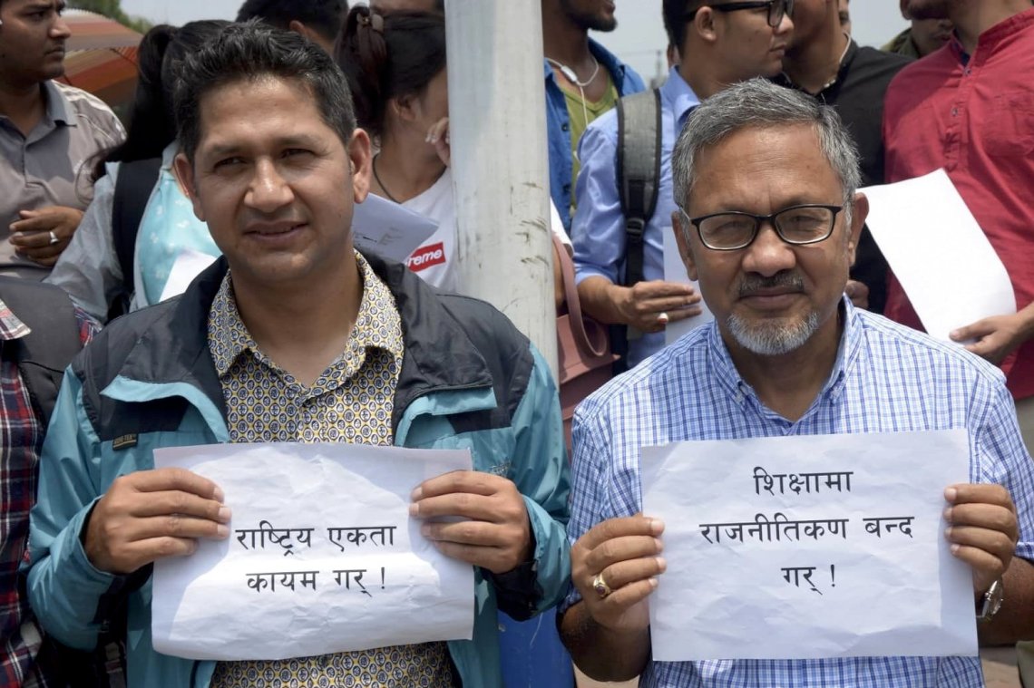 साझा विवेकशील पार्टीको नेतृत्वमा युवा तथा विद्यार्थीले प्रदर्शन प्रदर्शन गरेका हुन् ।
