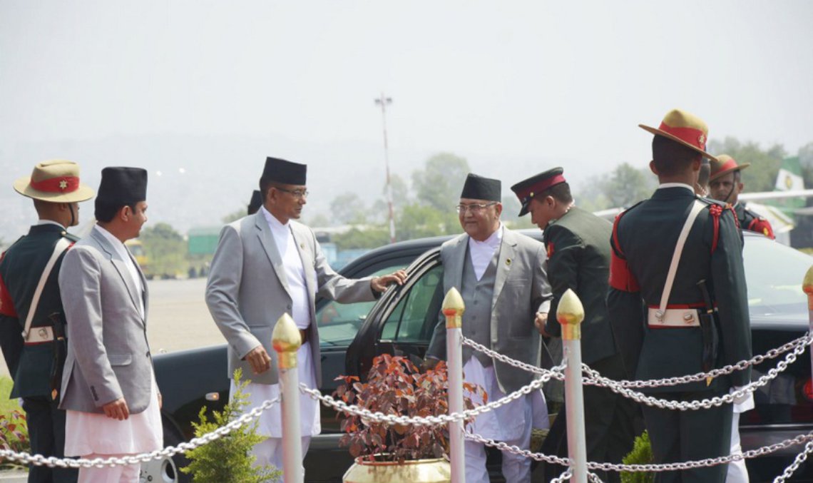 प्रधानमन्त्री ओलीको सम्मान सो अवसरमा नेपाली सेनाको एक टुकडीले सम्मानगारत अर्पण गरेको थियो । मन्त्रीगण, नेपाल सरकारको उच्चपदस्थ अधिकृत, सुरक्षा निकायका प्रमुख, नेपालस्थित कुटनीतिक नियोगका प्रमुख पनि प्रधानमन्त्रीको स्वागतका लागि विमानस्थल पुगेका थिए ।