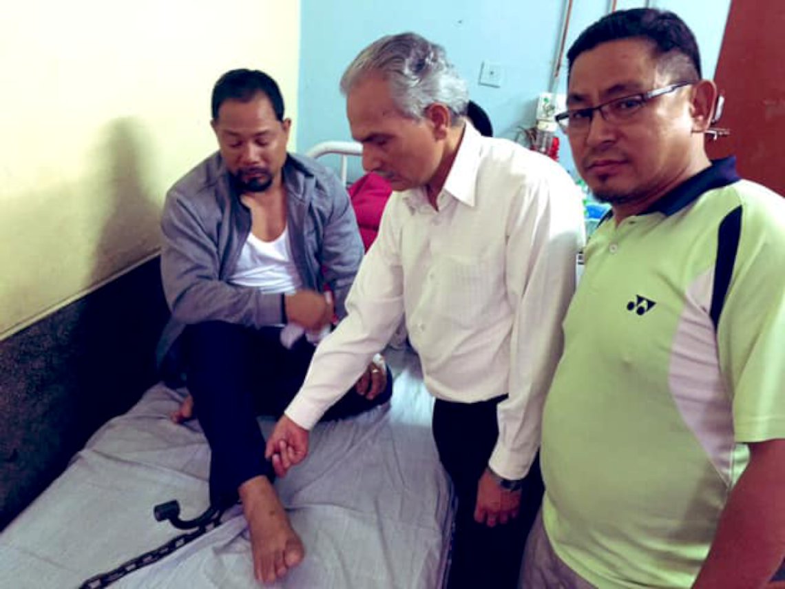 उनले अस्पतालमा चौधरीलाई भेटेको एक तस्बिर सामाजिक संजालमार्फत सार्वजनिक गर्दै भनेका छन्, ‘१४ किलोको नेल र हत्कडीले बाँधेर लडाउनु कति मानवोचित र विधिसम्मत हो ?’