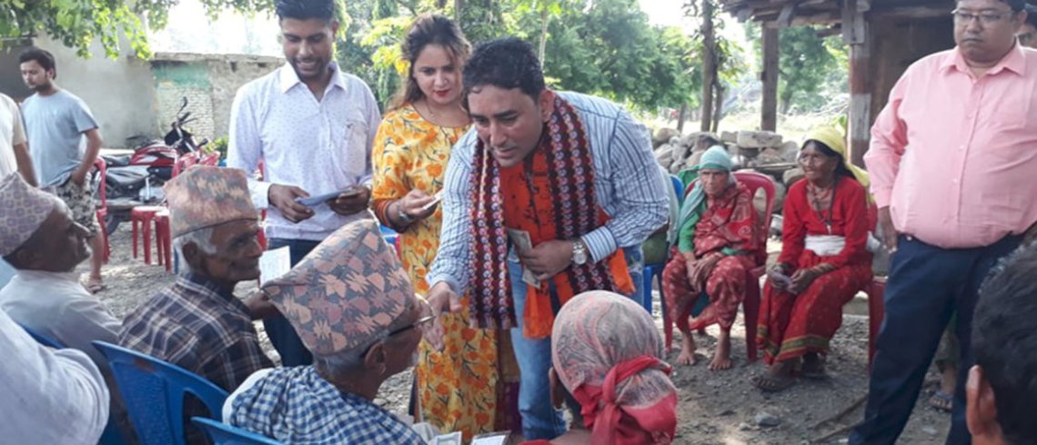 ज्येष्ठ नागरिकलाई प्रतिव्यक्ति रु एक हजार पाँच सय र अपागङ्गता भएका व्यक्तिलाई रु एक हजारका दरले हस्तान्तरण गरेको वडा कार्यालयले जनाएको छ । “निर्वाचनबाट म जनताको सेवाका लागि अध्यक्ष भएको हुँ”, वडाध्यक्ष कुँवरले भन्े, “जनताको करबाट हामीलाई दिइएको सुविधा गाउँमै दिने निर्णय लिएको हुँ ।”