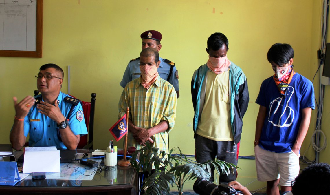 गलकोट । बागलुङ जिल्ला प्रहरी कार्यालयले छुटृाछुटृै मुद्दामा आरोप लागेका तीन अभियुक्तलाई आज सार्वजनिक गरेको छ । ढोरपाटन नगरपालिका–८ बोबाङ गाउँमा वृद्ध दम्पतीको हत्याका अभियुक्त मृतकका आफ्नै भाइ ६१ वर्षीय मसाने कामीलाई सार्वजनिक गरिएको हो । निजले वोबाङ गाउँमा गत साउन २५ गते राति वृद्ध दम्पतीको धारिलो हतियार प्रयोग गरी हत्या गरेको आरोप लागेको थियो ।