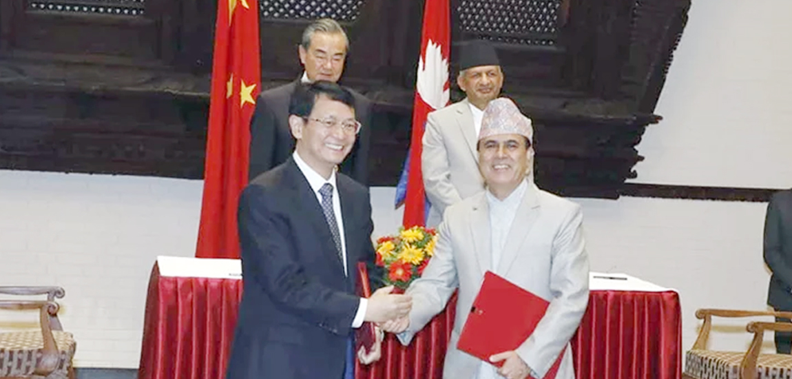 काठमाडौंको एक पाँचतारे होटलमा उच्चस्तरीय वार्तापछि चिनियाँ विदेशमन्त्री यी र नेपाली सकमक्षी प्रदीप ज्ञवालीको उपस्थितिमा हस्ताक्षर भएको हो ।