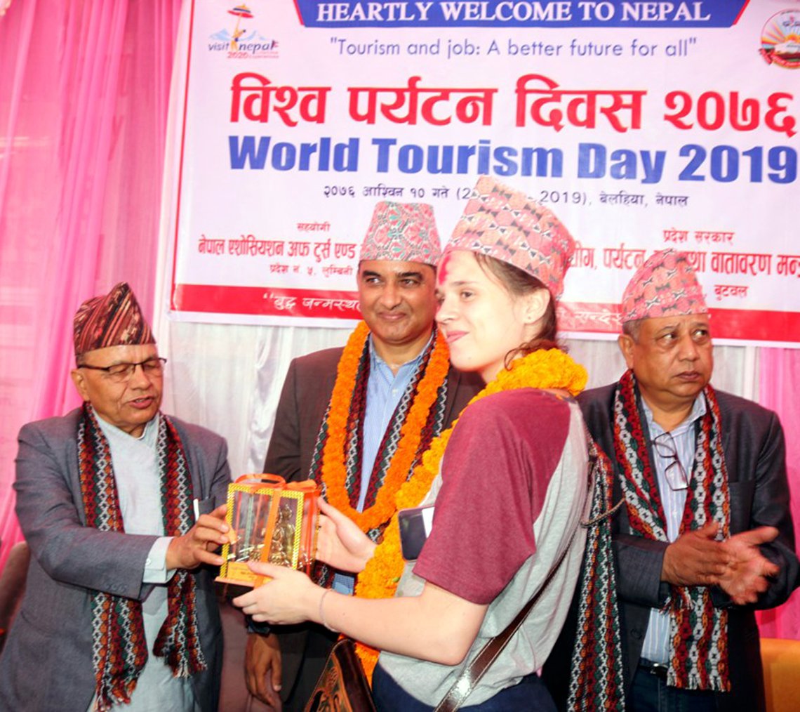 काठमाडौं । विश्व पर्यटन दिवसका अवसरमा सरकारले मुलुकको पर्यटन क्षेत्रमा योगदान गर्ने विभिन्न सङ्घ–संस्थालाई सम्मान गरेको छ । पर्यटन व्यवसायका माध्यमबाट मुलुकलाई योगदान पु¥याउने विभिन्न वायु सेवा प्रदायक कम्पनी, ट्राभल एजेन्सी, केबलकार, होटल तथा घरवास (होमस्टे) सम्मानित भएका हुन् ।