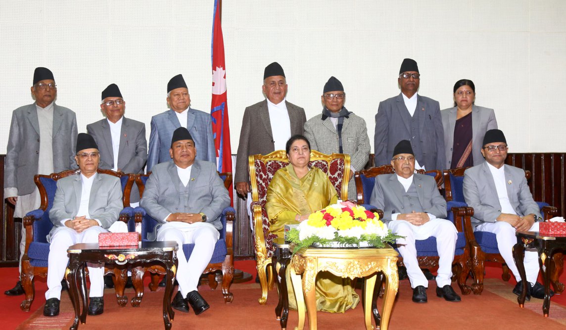 राष्ट्रपति भवन, शीतलनिवासमा आज आयोजित विशेष समारोहमा उनले नवनियुक्त प्रदेश प्रमुख सोमनाथ अधिकारी ‘प्यासी’ (प्रदेश नं १), तिलक परियार (प्रदेश नं २), विष्णुप्रसाद प्रसाई (प्रदेश नं ३), अमिक शेरचन (गण्डकी प्रदेश), धर्मनाथ यादव (प्रदेश नं ५), गोविन्दप्रसाद कलौनी (कर्णाली प्रदेश)र शर्मिलाकुमारी पन्त (सुदुरपश्चिम प्रदेश) लाई शपथ गराएको हो ।