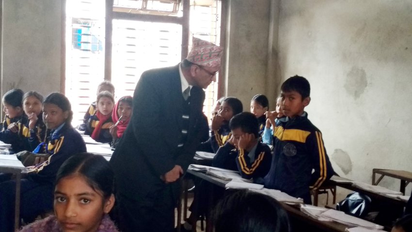 ‘जनसङ्ख्या र यसको महत्व’ पाठ पढिरहेका बेला एकाएक बाहिरी विशिष्ट व्यक्तिहरु पुगेर प्रश्न सोधेकाले विद्यार्थीले उत्तर नदिएका पनि हुन सक्छन् । त्यसपछि सचिव दाहालले \'सामाजिक अध्ययन भनेको के हो ?\', \'जनसङ्ख्या भनेको के हो ?\', \'भूगोल भनेको के हो ?\' जस्ता प्रश्न गर्दा भने केही विद्यार्थीले नेपाली र अङ्ग्रेजी दुवै भाषामा सजिलै जवाफ दिए । त्यहीबीचमा राष्ट्रिय पुनः निर्माण प्राधिकरण (शिक्षा) कार्यक्रम कार्यान्वयन एकाइ, गोरखाका प्रमुख विष्णुप्रसाद मिश्रले आफ्नो डायरी बेन्चमा राखेर त्यसको लम्बाइ र चौडाइ सोध्दा पनि विद्यार्थीले ढुक्कले उत्तर दिन सकेनन् ।