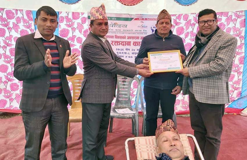 स्याङ्जा । सूर्योदय बचत तथा ऋण सहकारी संस्था लिमिटेड स्याङ्जाले संस्थाको २१ औं स्थापना दिवसको अवसर पारेर खुल्ला रक्तदान कार्यक्रम सम्पन्न गरेको छ । “रक्तदान जीवनदान” भन्ने मुल नारालाई आधार मान्दै संस्थाले स्थापना दिवसको दिन रक्तदान कार्यक्रम गरेको हो ।