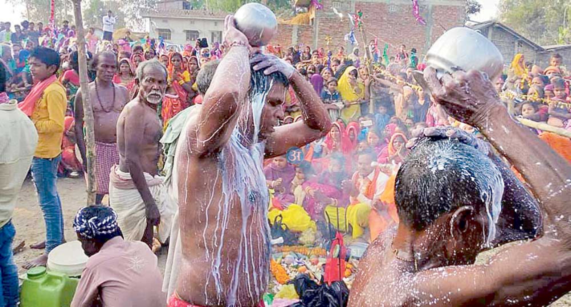 जनकपुरधाम । १२ वर्षीय राजा माझी र १४ वर्षीय शिवनन्दन माझी चुलोमाथि माटोको तौलामा उम्लिरहेको दूध अम्खोराले निकाल्दै शरीरमा खन्याइरहेका थिए। उनीहरू तातो दूधले यसरी नुहाइरहेका थिए कि जस्तो कि सामान्य पानी होस्। न त्यसले उनीहरू पोलेको आभास दिलाउँथे न त कुनै पीडाको अनुभूति।