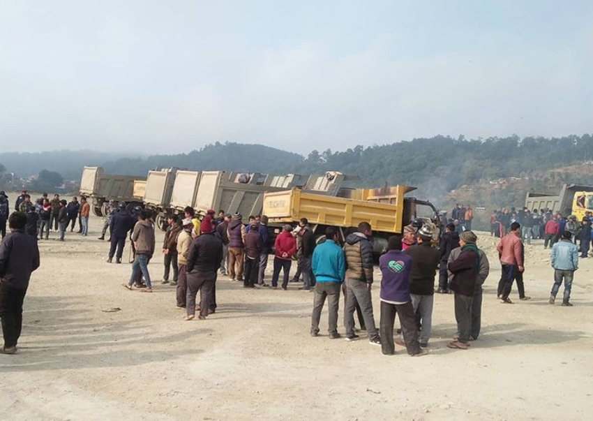 घटनास्थलमा जम्मा भएका स्थानीय र आफन्तजनले अवैध क्रसर बन्द नभएसम्म शव नउठाउने बताइरहेका छन्।
