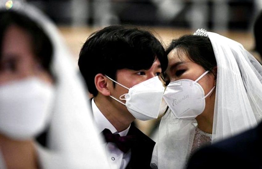 तर, कोरोना भाईरसको आतंकको कारण दक्षिण कोरियामा हालै सम्पन्न एक सामुहिक विवाहमा बेहुला बेहुली मात्रै होइन् उपस्थित मानिसहरु पनि माक्स लगाएका उपस्थित हुन बाध्य भए । कोरोना संक्रमणको डरको कारण उनिहरु त्यसरी उपस्थित भएका थिए ।