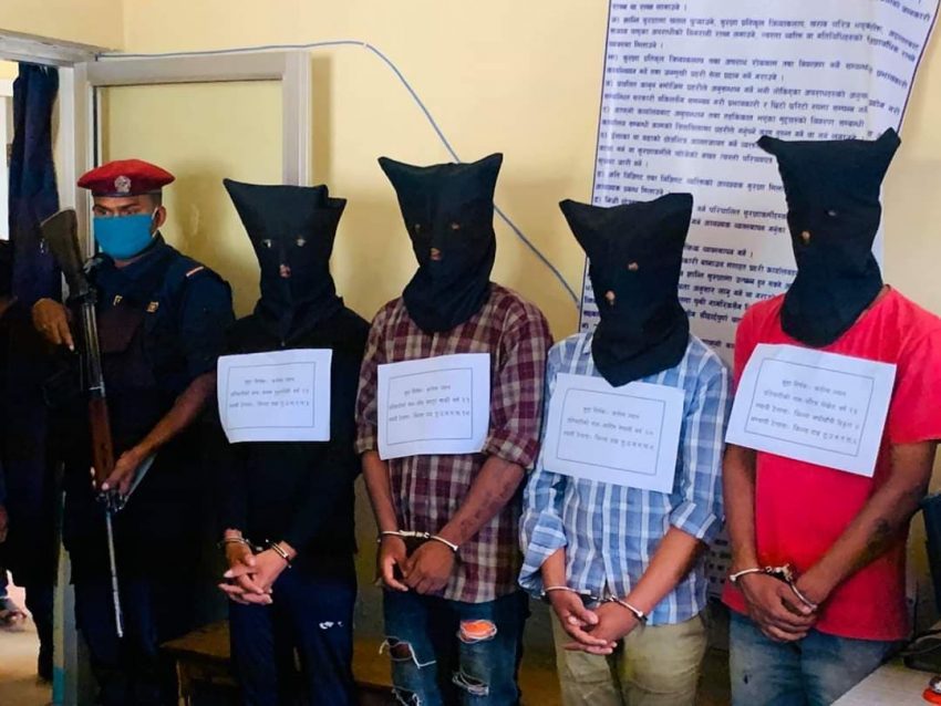 दाङ । दाङको तुलसीपुर उपमहानगरपालिका वडा नं ९ निवासी मन्दीप भुजेलको हत्याको आरोपमा प्रहरीले आज चार जनालाई पक्राउ गरेको छ । हत्या आरोपमा अर्घाखाँची घर भई हाल तुलसीपुर ६, कपडादेवी निवासी २३ वर्षीय सौरभ पोखरेल, ५ निवासी २३ वर्षीय अजय बुढाथोकी र २० वर्षीय आशिष नेपाली तथा १८ निवासी २१ वर्षीय ओमबहादुर सार्कीलाई पक्राउ गरिएको इलाका प्रहरी कार्यालय तुलसीपुरले आज पत्रकार सम्मेलन गरी सार्वजनिक गरेको छ ।