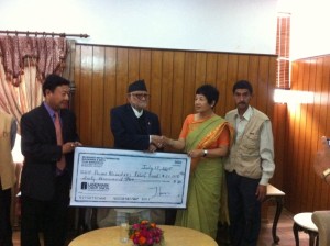 \"Prime१ साउन, काठमाडौं । भूकम्पपीडित नेपालीहरुको राहत र पुर्नस्थापना कार्यलाई सघाउन अमेरिकाको विल्किन्सनस्थित मिल्वाकी र मासाचुसेट व्याडमिण्टन संघले प्रधानमन्त्री दैवी प्रकोप उद्धार कोषमा रकम प्रदान गरेका छन् । शुक्रबार बिहान प्रधानमन्त्री निवास बालुवाटारमा आयोजित कार्यक्रममा मिल्वाकी संस्थाकी अध्यक्ष डा. कल्याणी राईले ६० हजार अमेरिकी डलरको चेक प्रधानमन्त्री सुशील कोइरालालाई हस्तान्तरण गरेकी थिइन् । सो कार्यक्रममा संस्थाका अनुप राई, रोशन कार्की, विष्णु आचार्य र दिलकुमार ब्लोनको पनि उपस्थिति रहेको थियो । त्यस्तै आजै बिहान कैलाली जिल्ला व्याडमिण्टन संघका अध्यक्ष महेश शाहले  प्रधानमन्त्री निवास बालुवाटारमा आयोजित कार्यक्रममा मासाचुसेट व्याडमिण्टन संघबाट प्राप्त ६ लाख ५४ हजार ७ सय ७६ रुपैया (६ हजार ३ सय ७६ अमेरिकी डलर)को चेक प्रधानमन्त्री सुशील कोइरालालाई हस्तान्तरण गरे । भूकम्प पीडितहरुको राहत र पुर्नस्थापना कार्यलाई सघाउन दिइएको सो रकम हस्तान्तरण कार्यक्रममा हिरादत्त भट्ट, मेघराज कठायत र सिद्धराज उपाध्ययको पनि उपस्थिति रहेको थियो । कार्यक्रममा प्रधानमन्त्री कोइरालाले पीडितहरुको लागि आएको रकम र राहत सामग्री दुरुपयोग हुन नदिने बताए ।