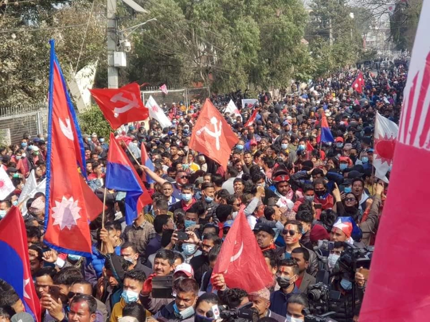 काठमाडौं । सर्वोच्च अदालतले प्रतिनिधि सभा विघटनको निर्णय बदर गरेपछि नेकपा प्रचण्ड–माधव नेपाल पक्षले काठमाडौंमा भब्य विजय जुलुस निकालेका छन् । काठमाडौंको शान्तिबाटीकामा भेला भइ सो पक्षका नेता कार्यकर्ताले विजय र्‍यालीसहित नगर परिक्रमा गरेका हुन् । जुलुसमा नेताहरु अमृत कुमार बोहोरा, जनार्दन शर्मा, पम्फा भुषाल, देव गुरुङ लगायत सहभागी छन् । जुलुस  रत्नपार्कबाट सुरु भएर जमल, घण्टाघर, बागबजार हुँदै पुनः रत्नपार्कस्थित शान्तिबाटिकामा पुगेर सभामा परिणत हुने तय भएको छ ।