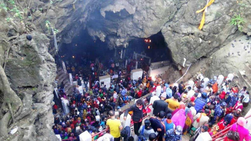 खोटाङ । विश्वप्रसिद्ध त्रिधार्मिकधाम खोटाङको हलेसीमा कोरोना कहरबीच पूजाआजा गर्ने भक्तजन तथा अवलोकन गर्ने पर्यटकको बाक्लो भीड लागेको छ । हिन्दू, बौद्ध र किराँत धर्मावलम्बीको सङ्गमस्थल हलेसीमा रामनवमीको अवसर पारेर १५ दिन मेला लाग्ने गरेको छ ।