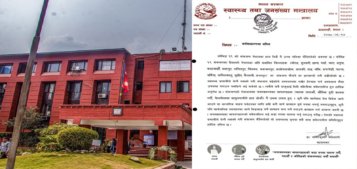 मन्त्रालयले शुक्रबार एक अपिल जारी गर्दै नयाँ भेरियन्टको कोरोना भाइरस डरलाग्दो गरी फैलिरहेकाले २२ जिल्ला 'रेड जोन'को सूचीमा राखेको छ ।