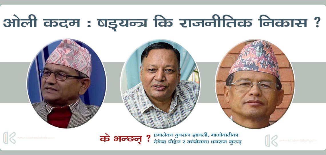 नैतिकताको आधारमा राजिनामा नदिइ संसदमा अविश्वास प्रस्तावमार्फत आफुलाई हटाउन विपक्षी दललाई चुनौति दिइरहेको अवस्थामा अचानक प्रधानमन्त्री ओलीले संसदबाट विश्वासको मत लिने निर्णयको पछाडिको रहस्य के छ ? अबको मुलुकको राजनीतिले कस्तो मोड लिन सक्छ भन्ने विषयमा खबरडबलीका संवाददाता गणेश पाण्डेले नेकपा एमालेका नेता युवराज ज्ञवाली, नेकपा माओवादी केन्द्रका नेता देवेन्द्र पौडेल र नेपाली कांग्रेसका नेता धनराज गुरुङसँग गरेकोे बहस :