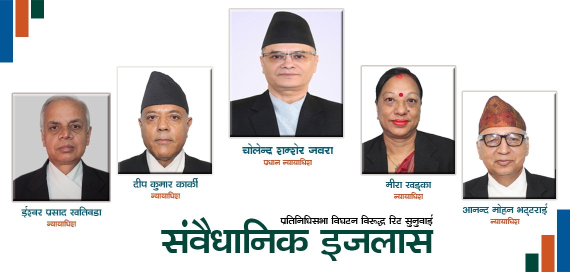 अधिवक्ता राजाराम घिमिरे, कृष्णप्रसाद भण्डारी, दिपक मिश्र र यज्ञमणि न्यौपानेले संवैधानिक इजलासको रोस्टरमा रहेका ११ जना न्यायाधीशहरूले अहिलेको मुद्दा सुनुवाइ गर्न नमिल्ने जिकिर गर्दै निवेदन दिएका थिए ।