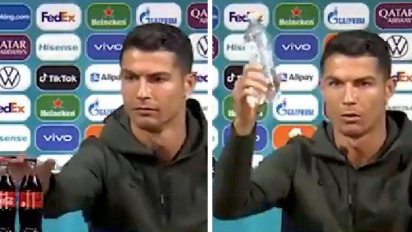 हंगेरीसँगको खेलअघि भएको पत्रकार सम्मेलनमा ३६ वर्षीय रोनाल्डोले प्रतियोगिताको ठूलो प्रयोजकसमेत रहेको कोकाकोलाको बोतल हटाउँदै खानेपानीको बोतल उचालेर देखाएका थिए।