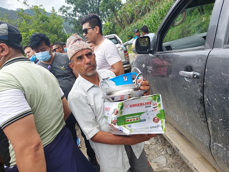 बाढी पहिरोबाट अति प्रभावित हेलम्बुको चनौटे, किउल र बगरमा खाना पकाउने सबै सेट भाँडाकुँडा र खाद्यान्न वितरण गरेको वाइसीएलका महासचिव सुवोध शेर्पालीले बताए । शेर्पालीका अनुसार चनौटे, किउल र बगरका एक सय परिवारलाई प्रेसकुकुर, थाल, कराइ, बटुका, डाडु, पन्यौ, पानी खाने जगलगायत खाना पकाउने सबै सेट वितरण गरिएको हो । त्यस्तै उनीहरूलाई खाद्यान्न पनि वितरण गरिएको छ ।